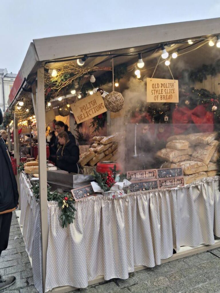 Ludzi multum, unosi się para z kotłów z bigosami, zupami, chochlami nabiera się pachnące korzeniami grzane wino, stragany ozdobione gałęziami jodły i świerku oraz świątecznymi ozdobami, wszędzie światełka, mieszają się zapachy, języki krajanów i turystów. Jednym słowem świątecznie.